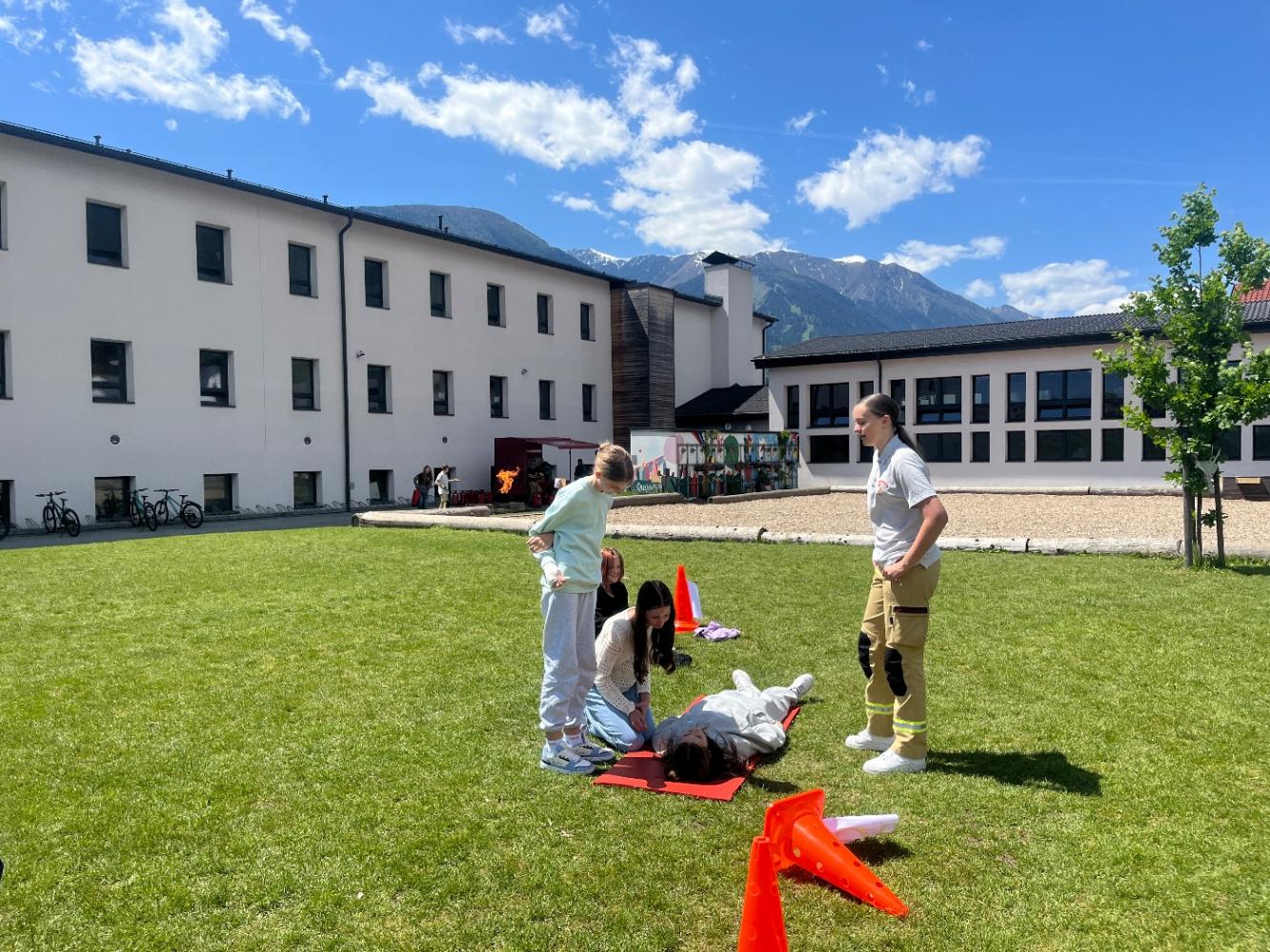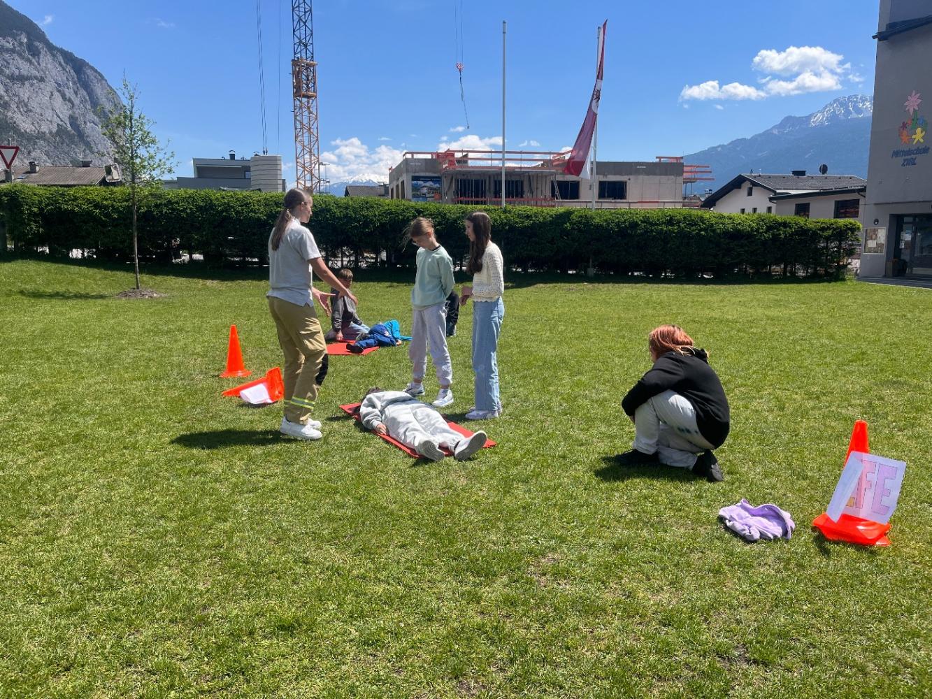 An dieser Station konnten wir wichtige Grundlagen der Ersten Hilfe üben. Von der stabilen Seitenlage bis zum Umdrehen und Wegziehen – wir haben gelernt, wie man im Notfall schnell und richtig handelt. Besonders spannend war das Ausprobieren an den Mitschülern, bei dem wir das Gelernte direkt anwenden konnten.