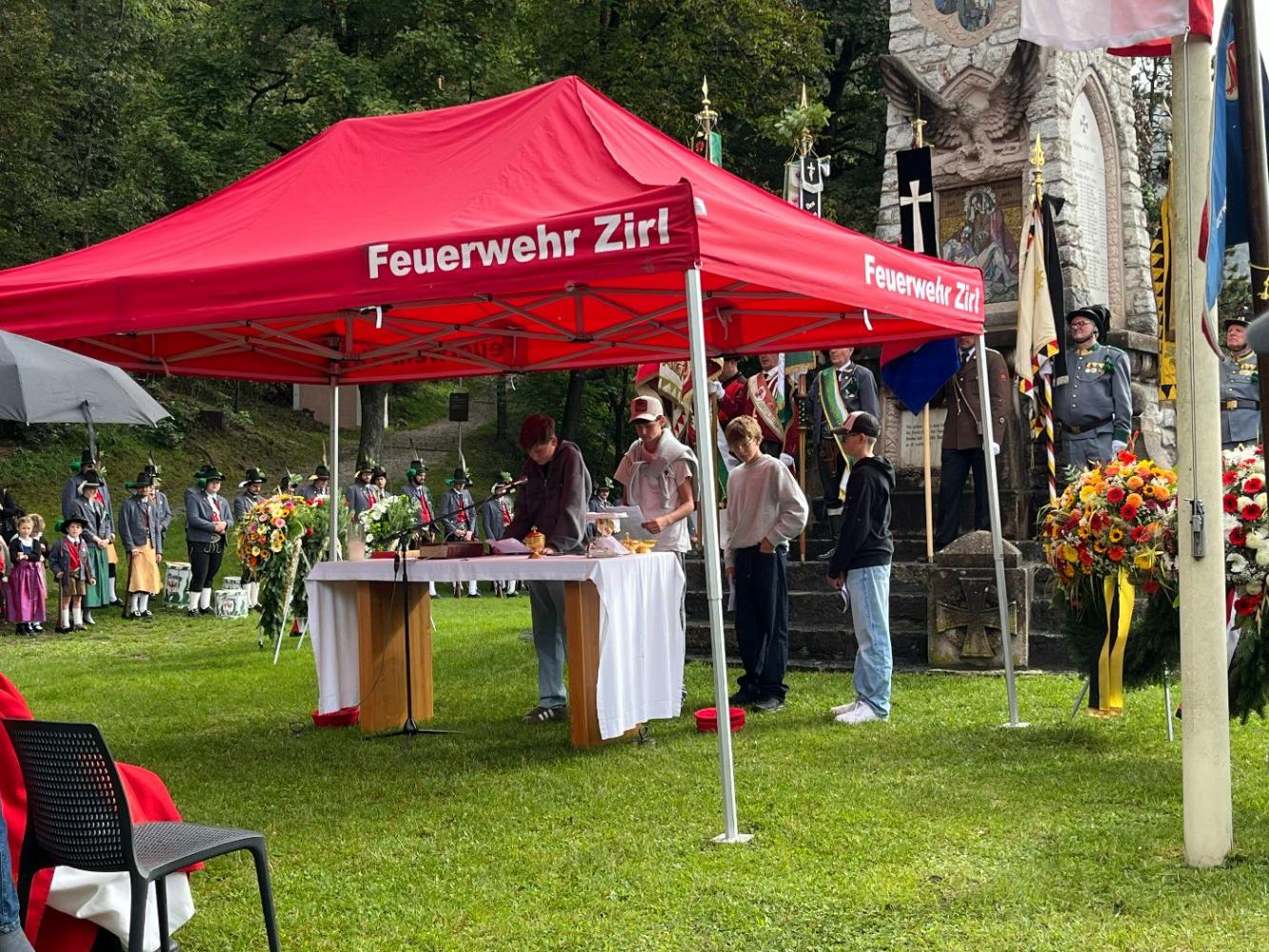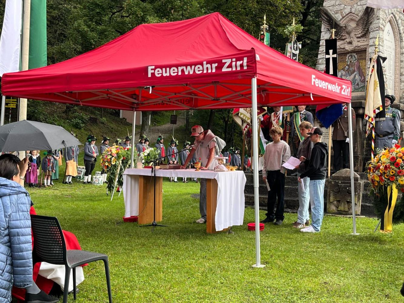 Die Klasse 4b nahm am 14.09.25 an der Gedenkfeier „80 Jahre Kriegsende“ in Zirl teil. Bei der Feier übergab Bürgermeister Thomas Öfner den Schülerinnen und Schülern das Wort, sodass sie ihre vorbereiteten Gedanken und Beiträge zum Thema „Krieg und Frieden“ vortragen konnten.