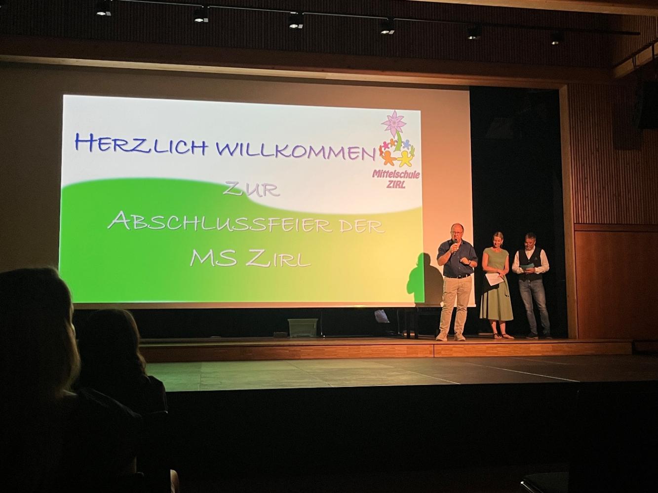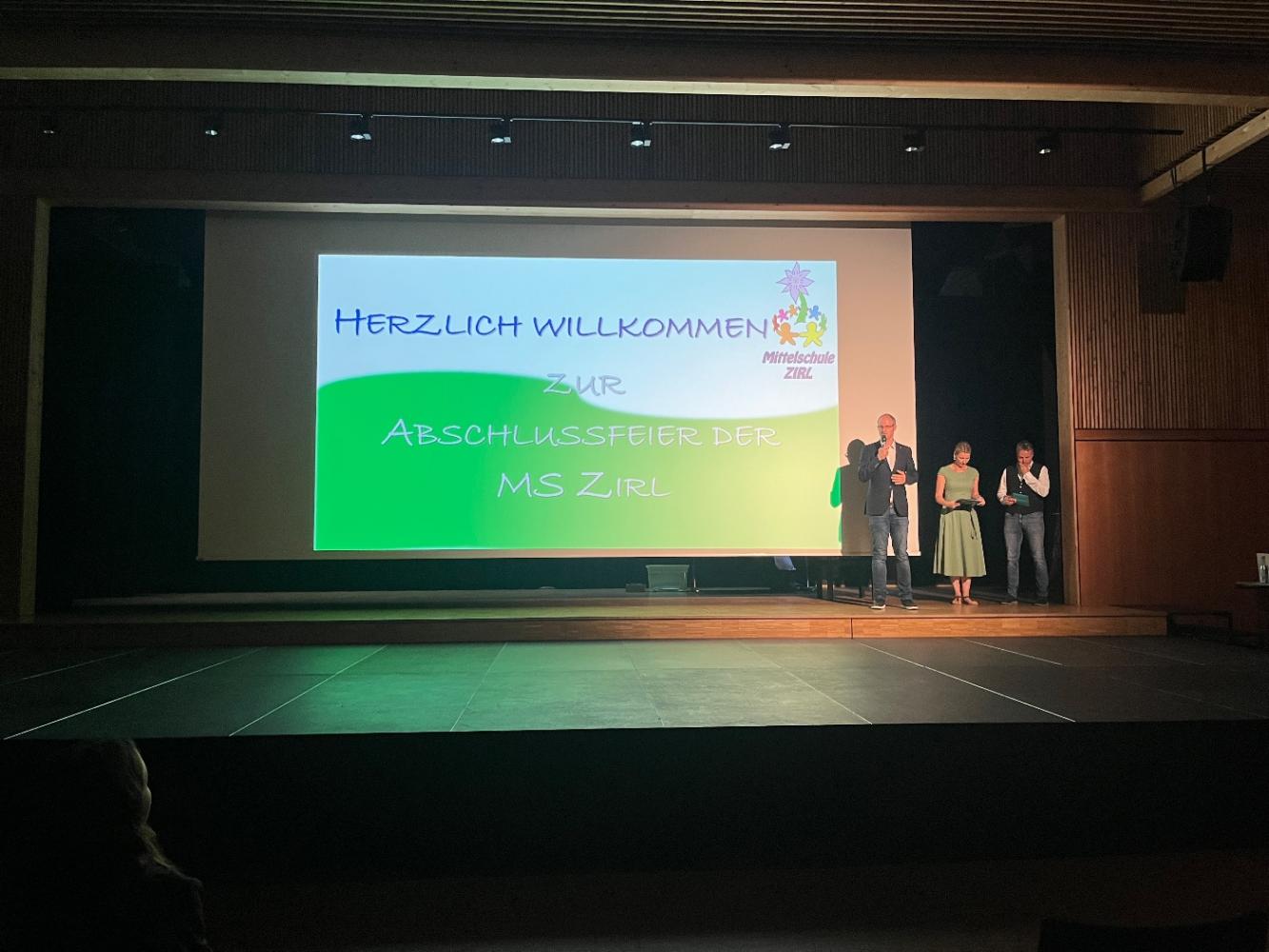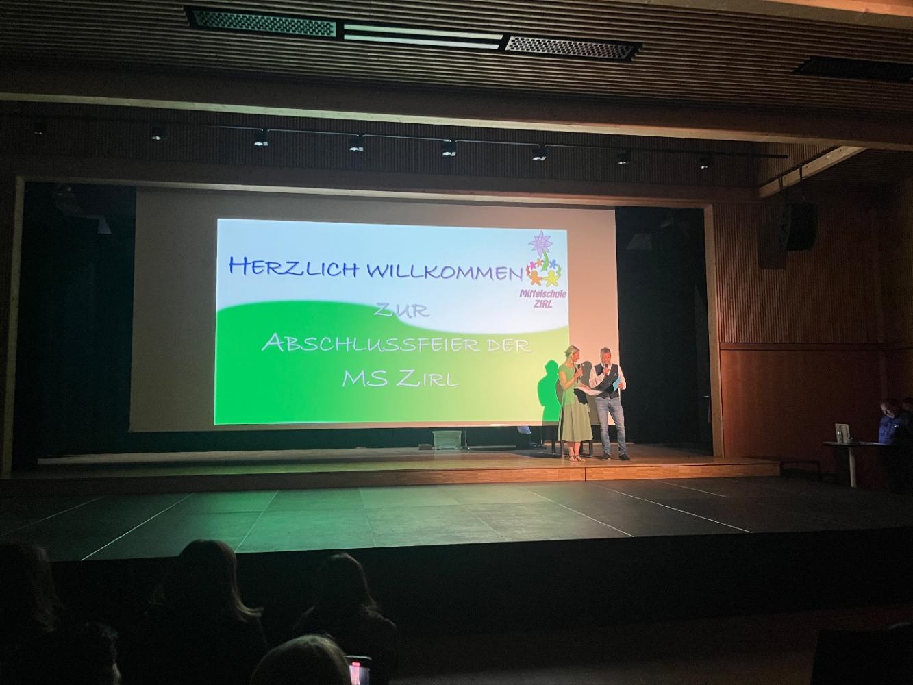 Nach den Begrüßungsworten von Seiten der Schulleitung, freuten wir uns über die Grußworte von Vize-Bürgermeister Lukas Kaufmann und unseren SQM Thomas Neuwirth. Im Anschluss übernahmen die Schulsprecher Mirjam und Noel die Moderation der Abschlussfeier.