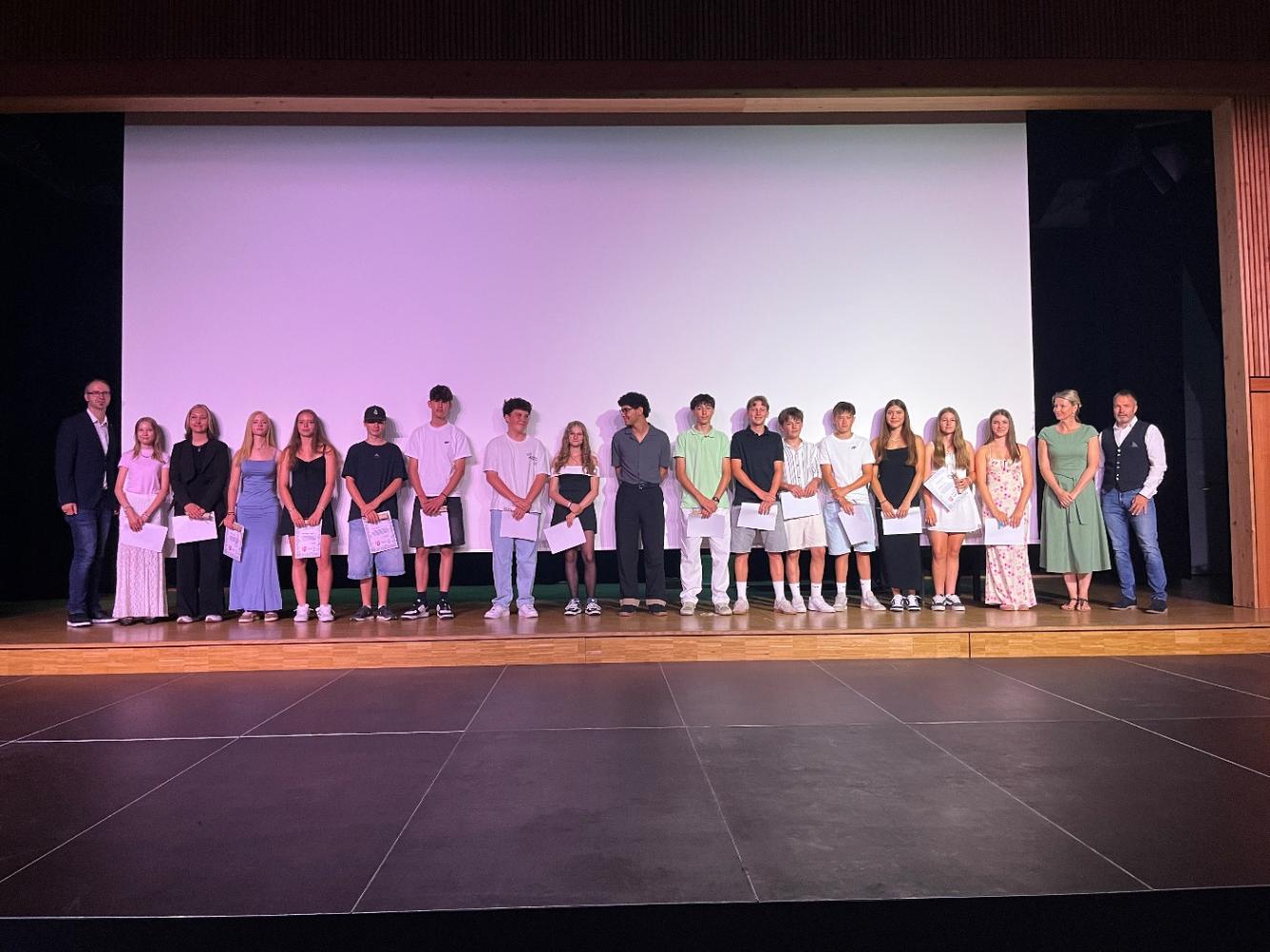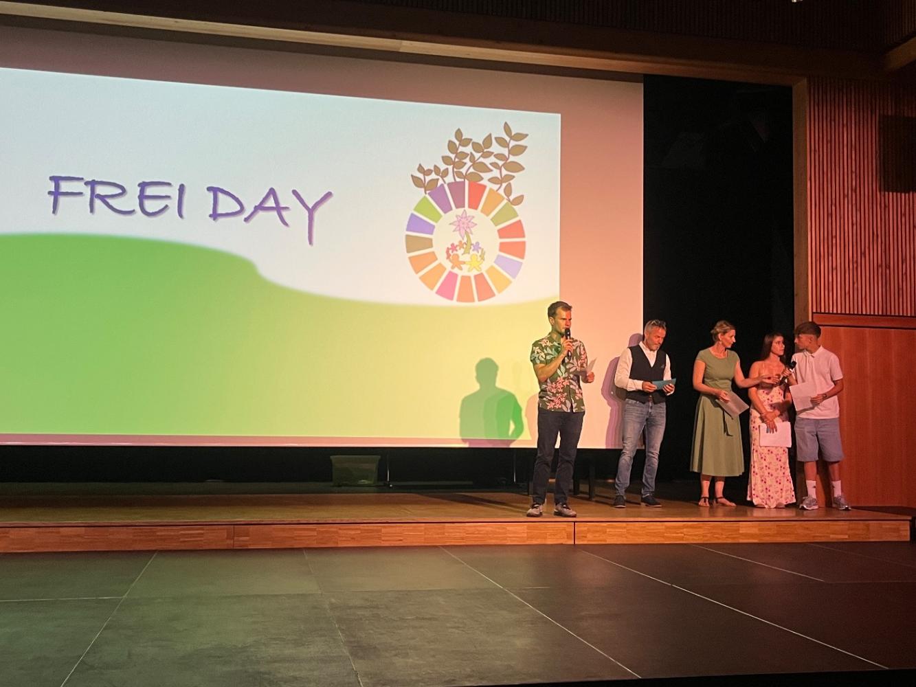 Einen besonderen Applaus verdienten sich die ausgezeichneten Erfolge der 4.Klassen, sowie die jeweils Klassenbesten der Schule. Auch galt ein Lob an alle Schülerinnen und Schüler in Bezug auf das Lernformat FREI DAY. FREI DAY-Koordinator Tim Klostermann hob die Chancen und Möglichkeiten des Formats konkret hervor und zeigte auf, wie viel durch das Unterrichtsfach bereits möglich gemacht wurde.