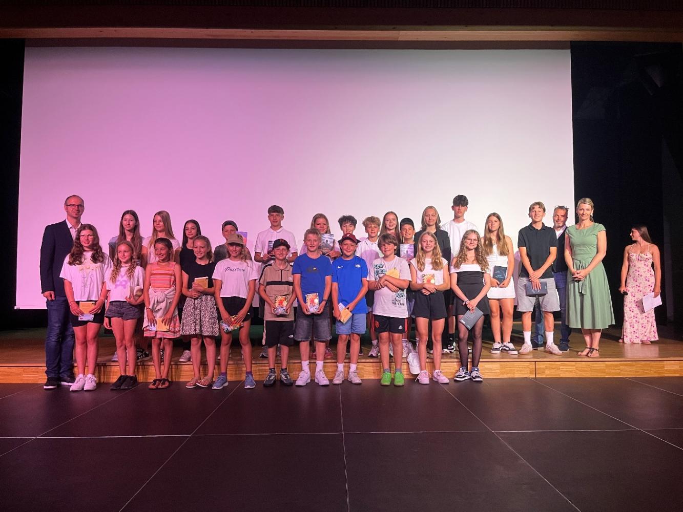 Am Donnerstag fand unsere jährliche Abschlussfeier im B4 statt. Gemeinsam als Schule feierten wir unser Schuljahr, blickten zurück und ehrten die 4.Klassen, sowie die Klassenbesten der Schule.